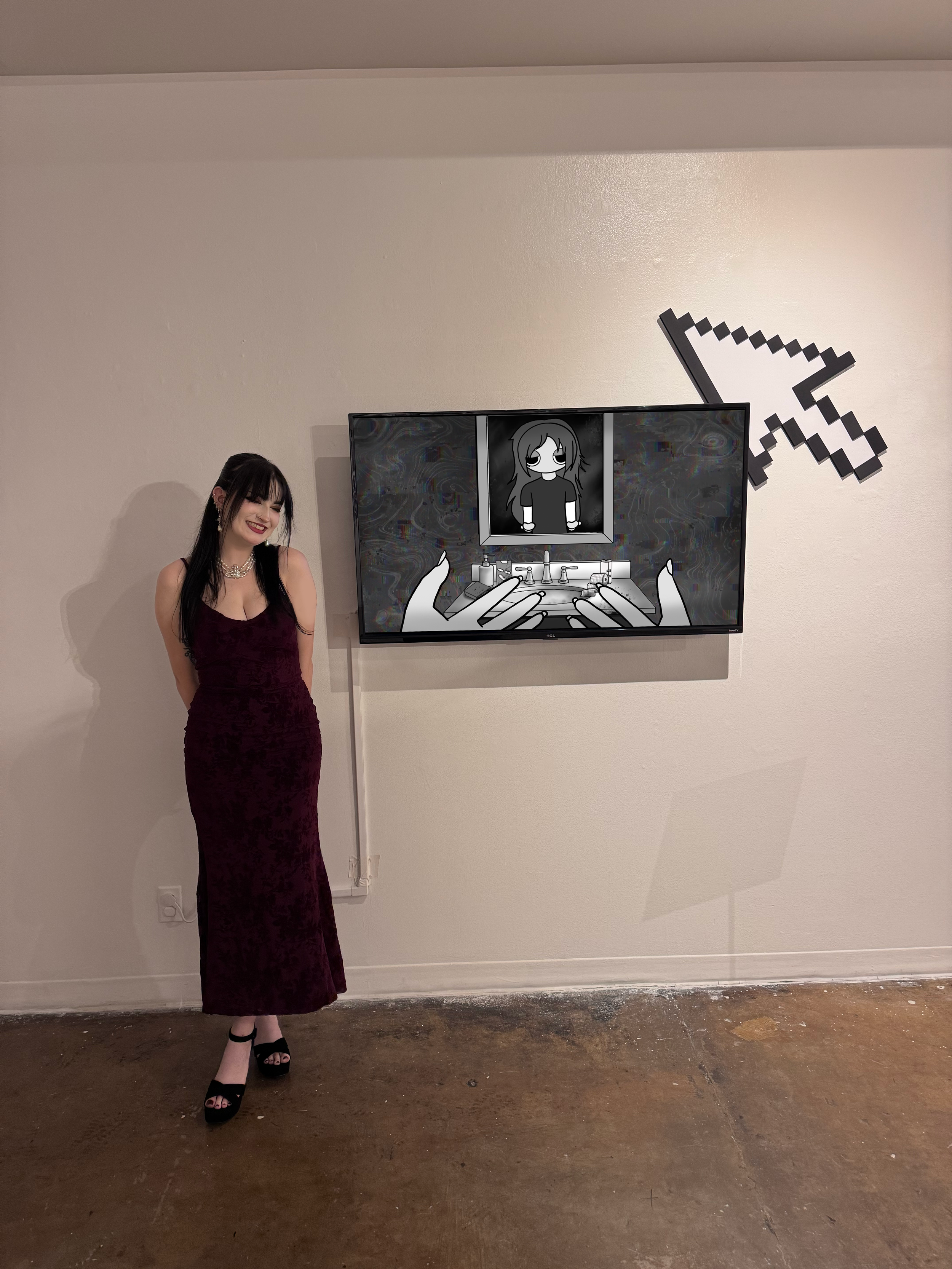 My artistic journey is a response to the overwhelming nature of life, surrounded by the idea that art should make you a little uncomfortable. Through animation, the pursuit of uncovering new feelings within the darkness aims to encourage viewers to confront unsettling themes while searching for hope amid the chaos. By blending simple character designs with overstimulating backgrounds, a visual narrative is created that mirrors the complexities of the human mind within the digital age. Ultimately my goal is to create a meaningful conversation between technology. Mental health, the human condition, and my own experiences invite audiences to reflect on their journeys and the shared struggles we face in navigating a world that is both dazzling and disorienting.